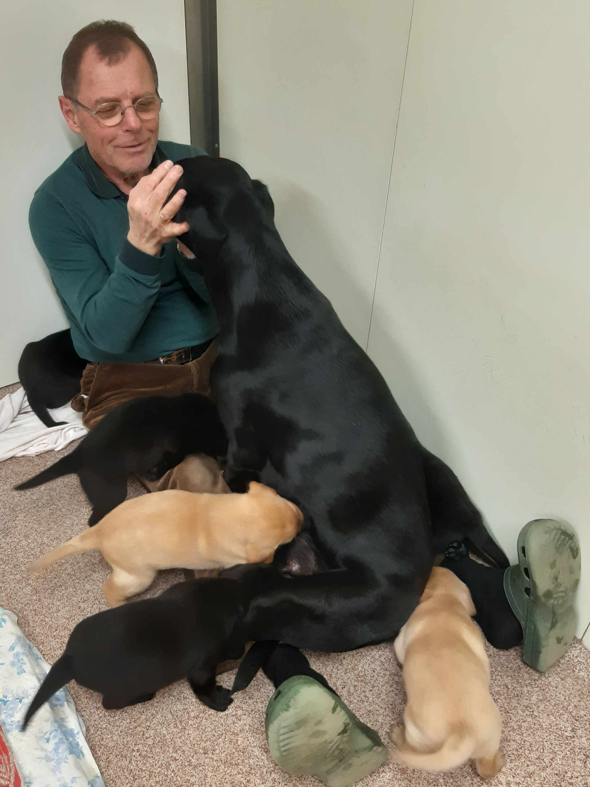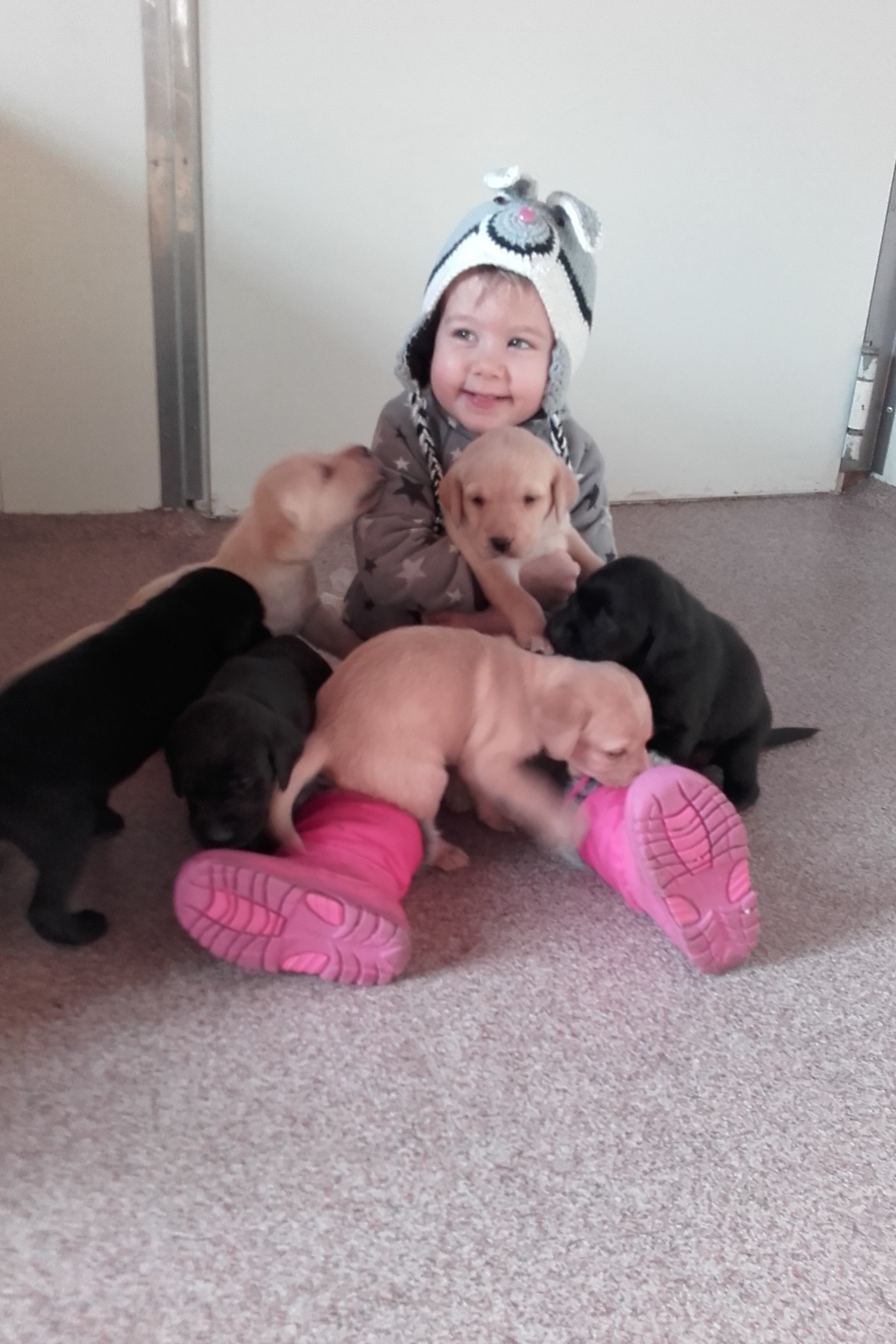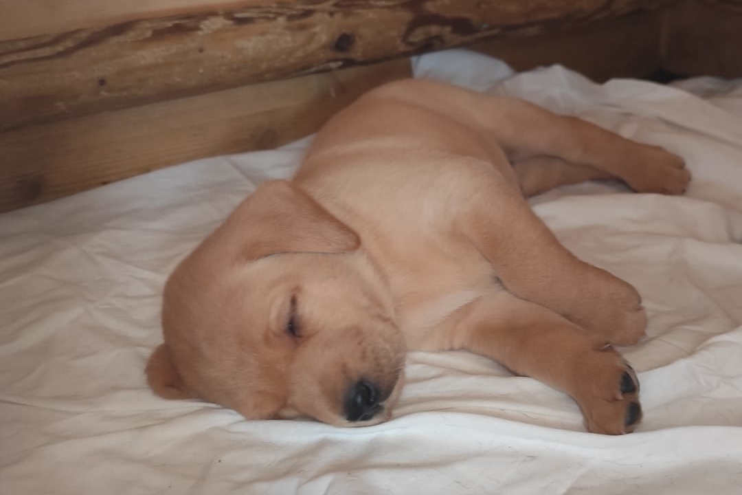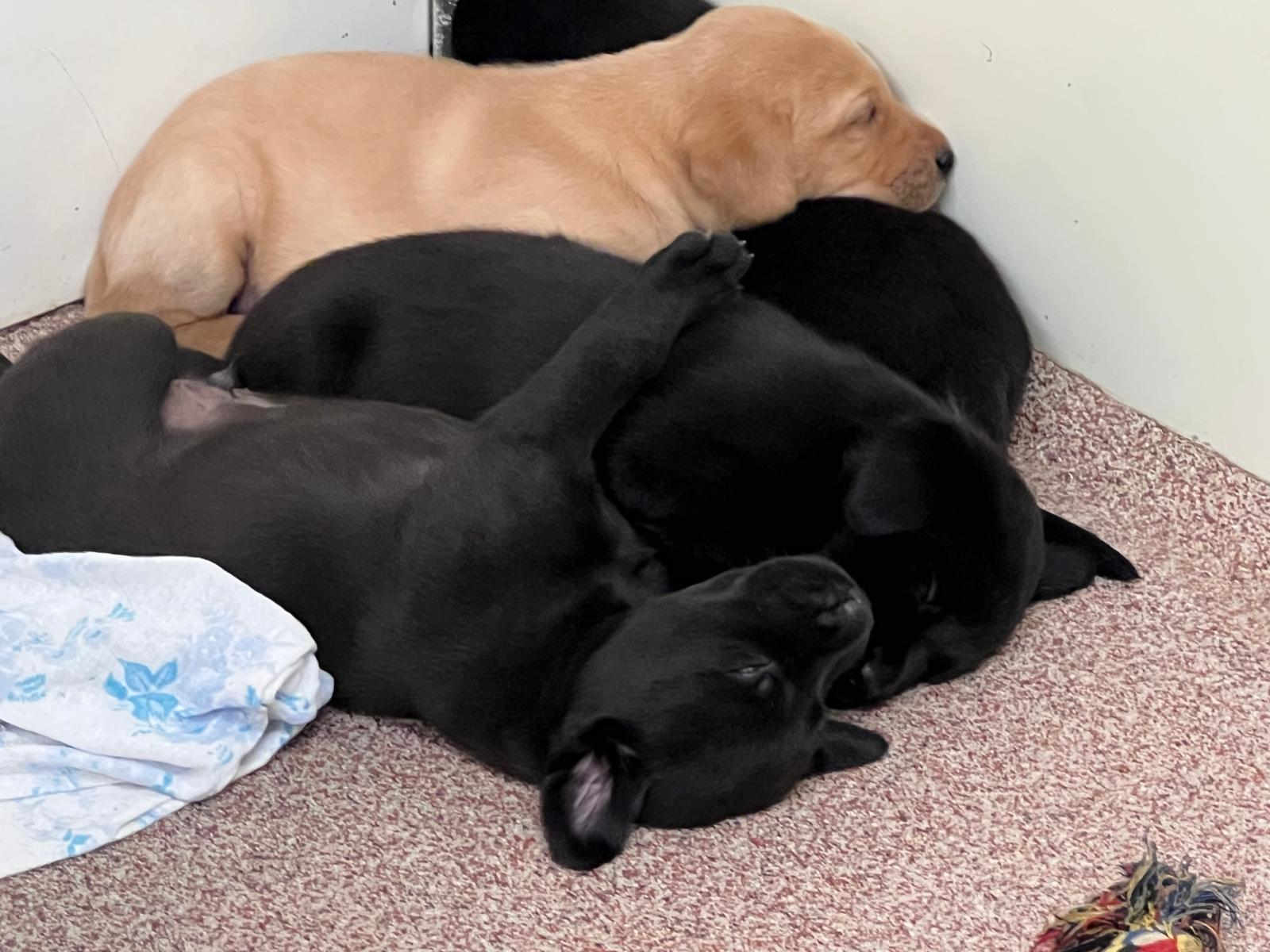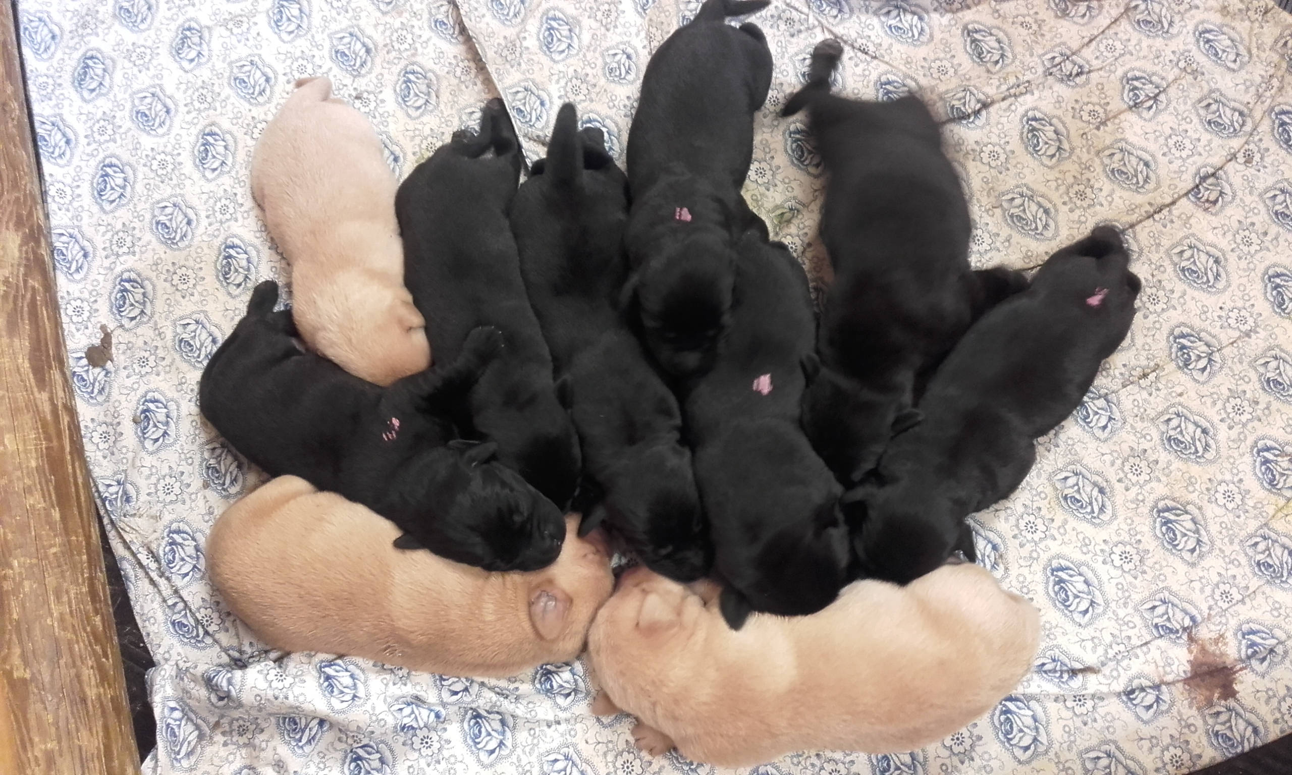 Unsere Ota hat am 2. Februar 2026 neun Welpen zur Welt gebracht, drei schwarze Rüden, drei gelbe Rüden, drei schwarze Hündinnen. Leider sind zwei Welpen verstorben. Die übrigen sieben Welpen entwickeln sich prächtig. Wir freuen uns jeden Tag über ihre lebhafte Entwicklung. Ota ist eine liebevolle Hundemama. Fotos vom P-Wurf in der Fotogalerie